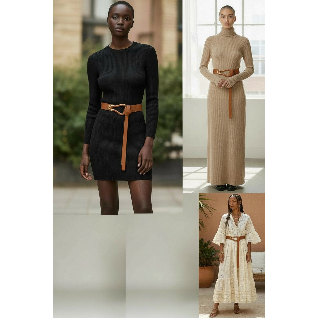 Crafted from high-quality leather, this belt features a unique double strap design and an eye-catching horsebit buckle. The wide construction adds a touch of sophistication, making it a versatile accessory for any outfit.