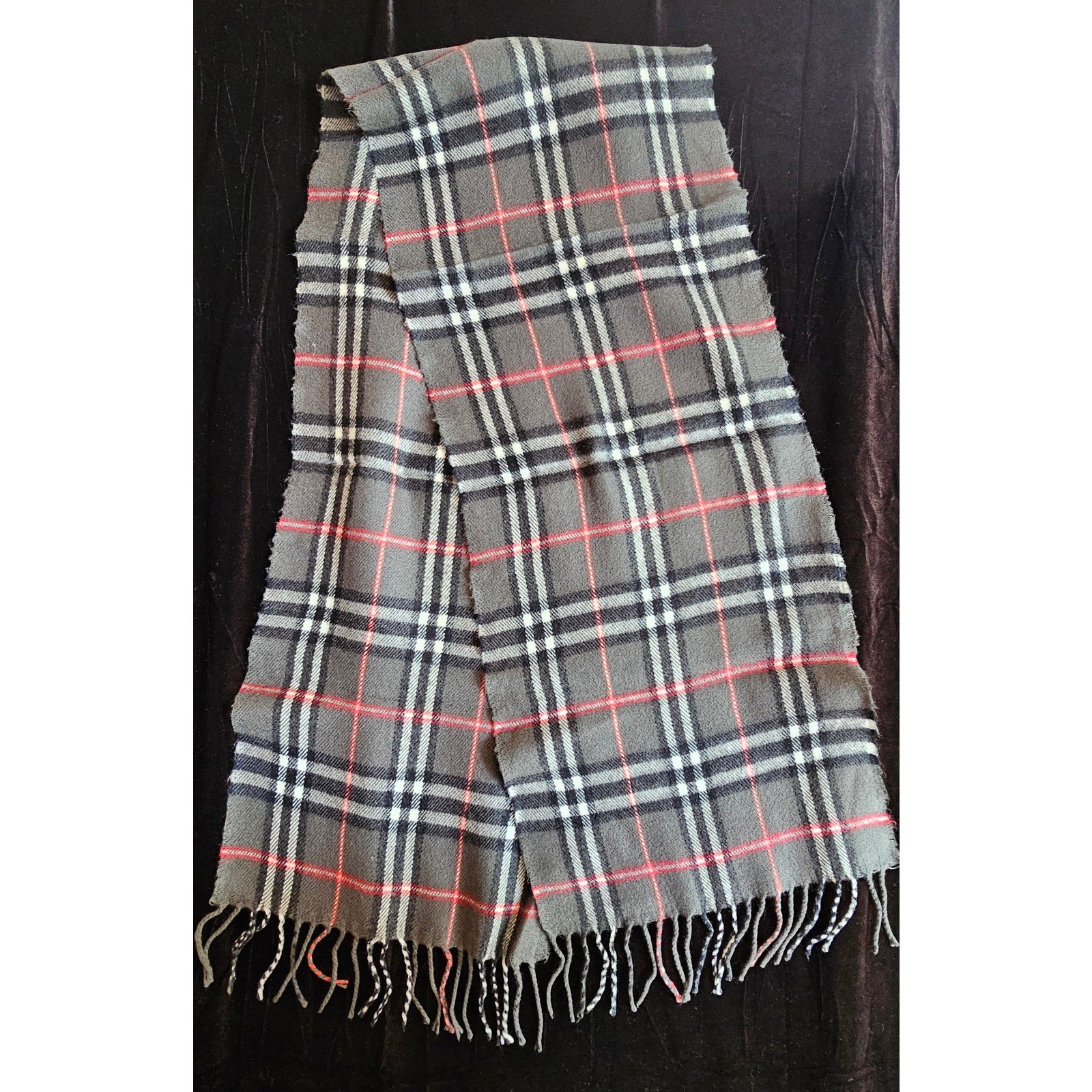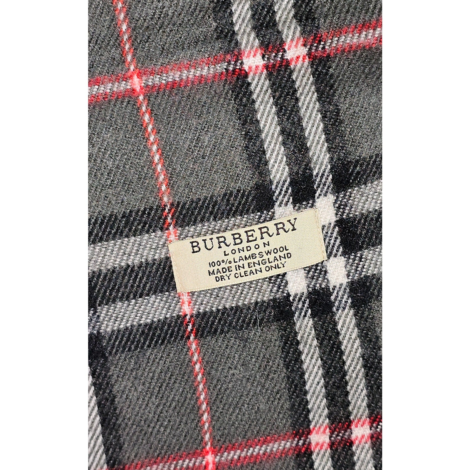 BURBERRY London 100% Lambswool Gray Scarf Shawl Nova Check Vintage (3)