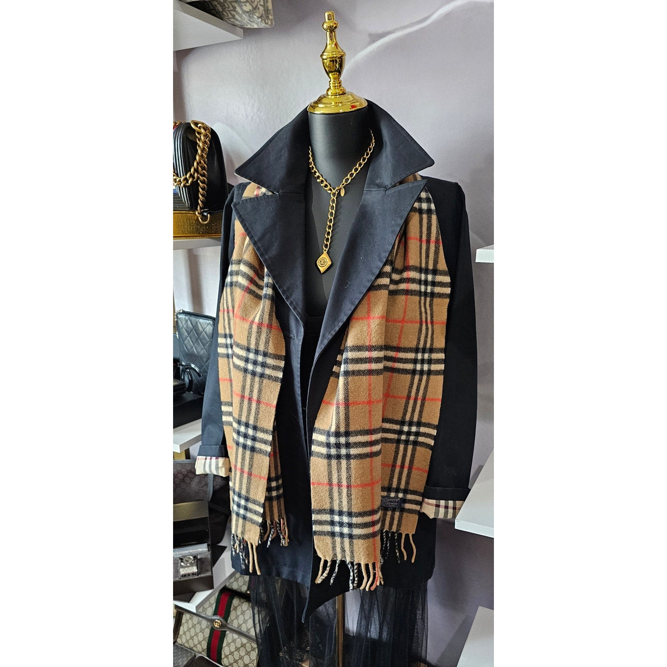 Add a touch of luxury to your wardrobe with this exquisite Burberry's of London cashmere scarf. Crafted in England, this vintage piece features the iconic Nova Check pattern in the popular beige nova check. Made from 100% cashmere, it offers unparalleled softness and warmth.