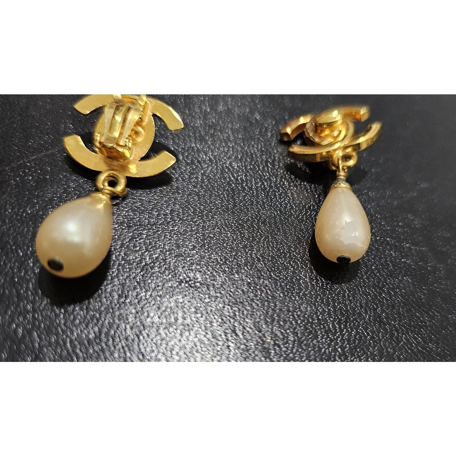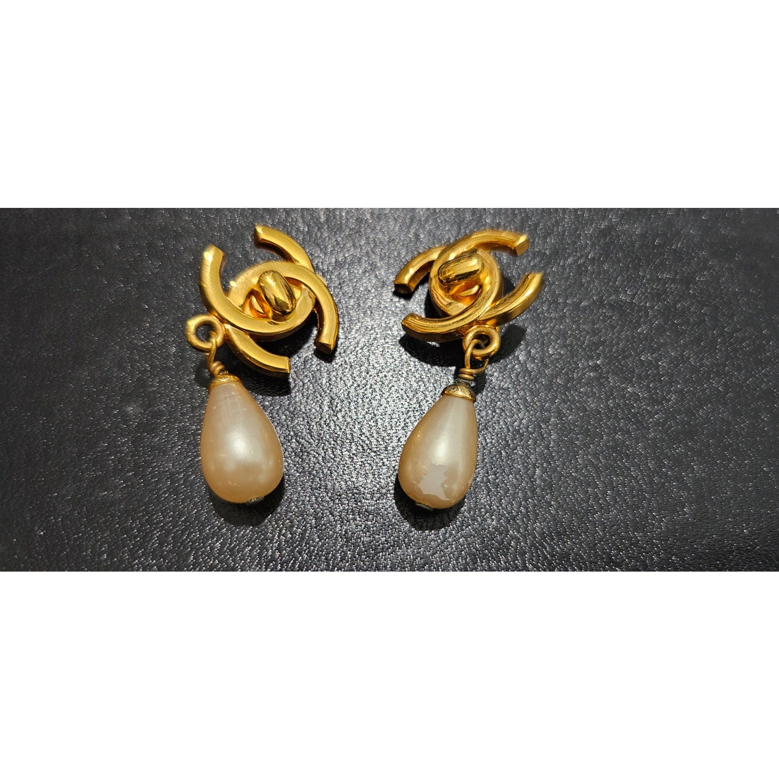 Chanel Classic CC Turnlock and Pearl Drop Earrings 24K Gold Plated