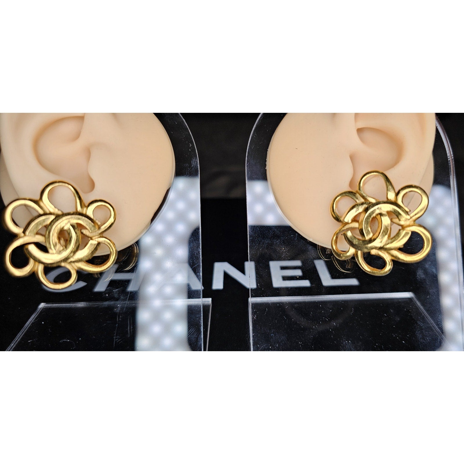 Add a touch of vintage elegance to your jewelry collection with these stunning pre-owned CHANEL clip-on earrings from 1996! Featuring the iconic CC logo intertwined with delicate flower accents, these earrings are a timeless statement piece.