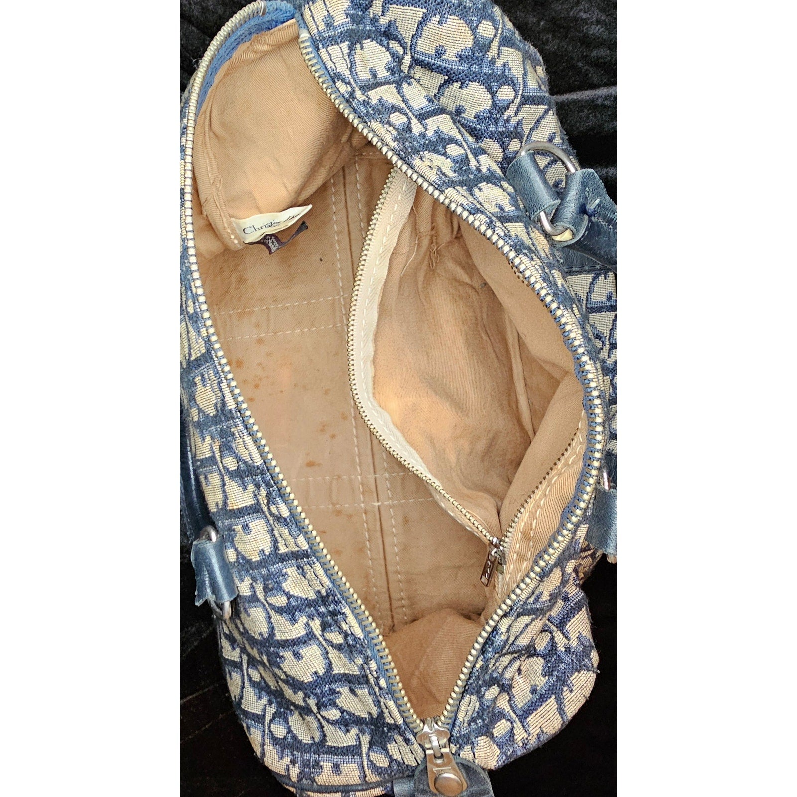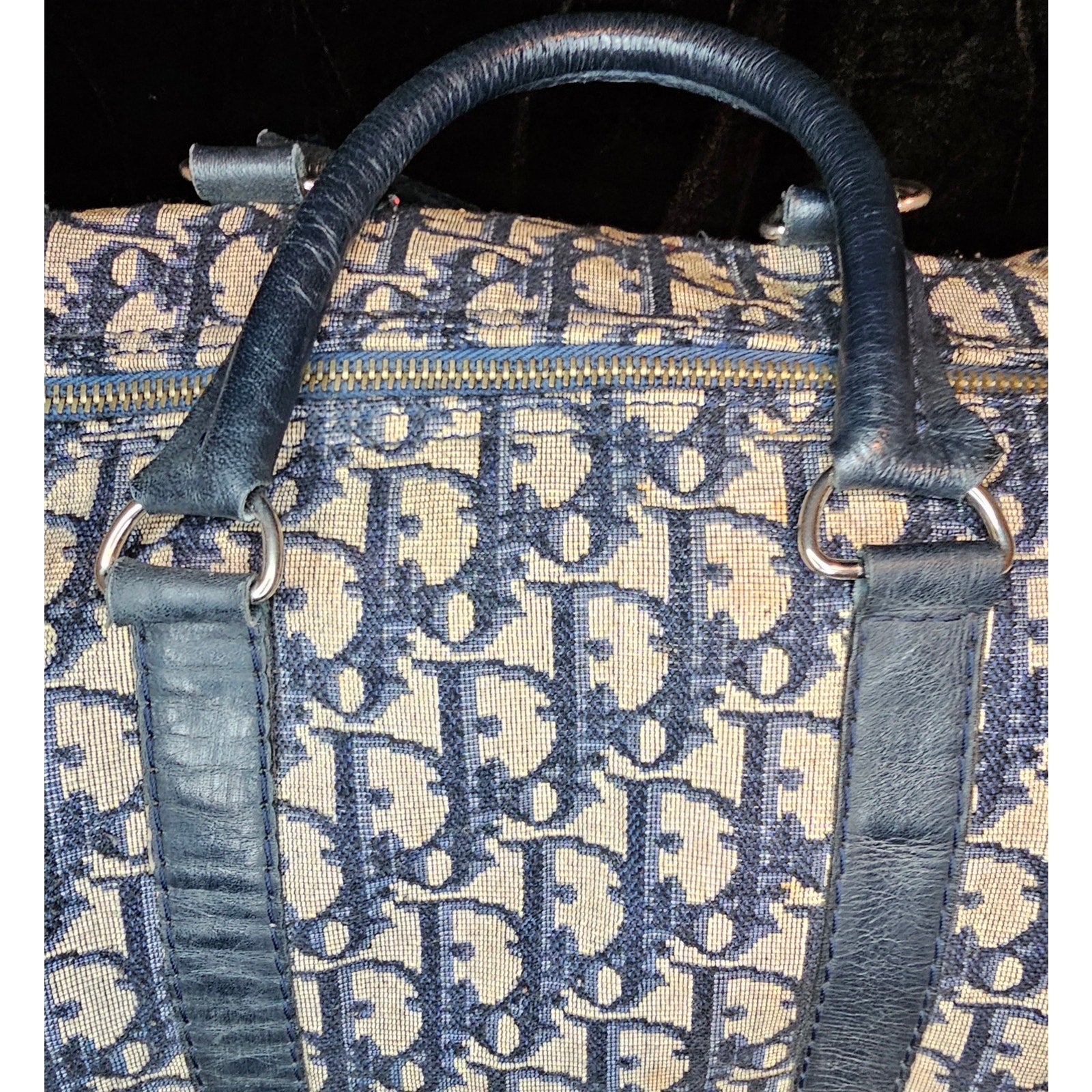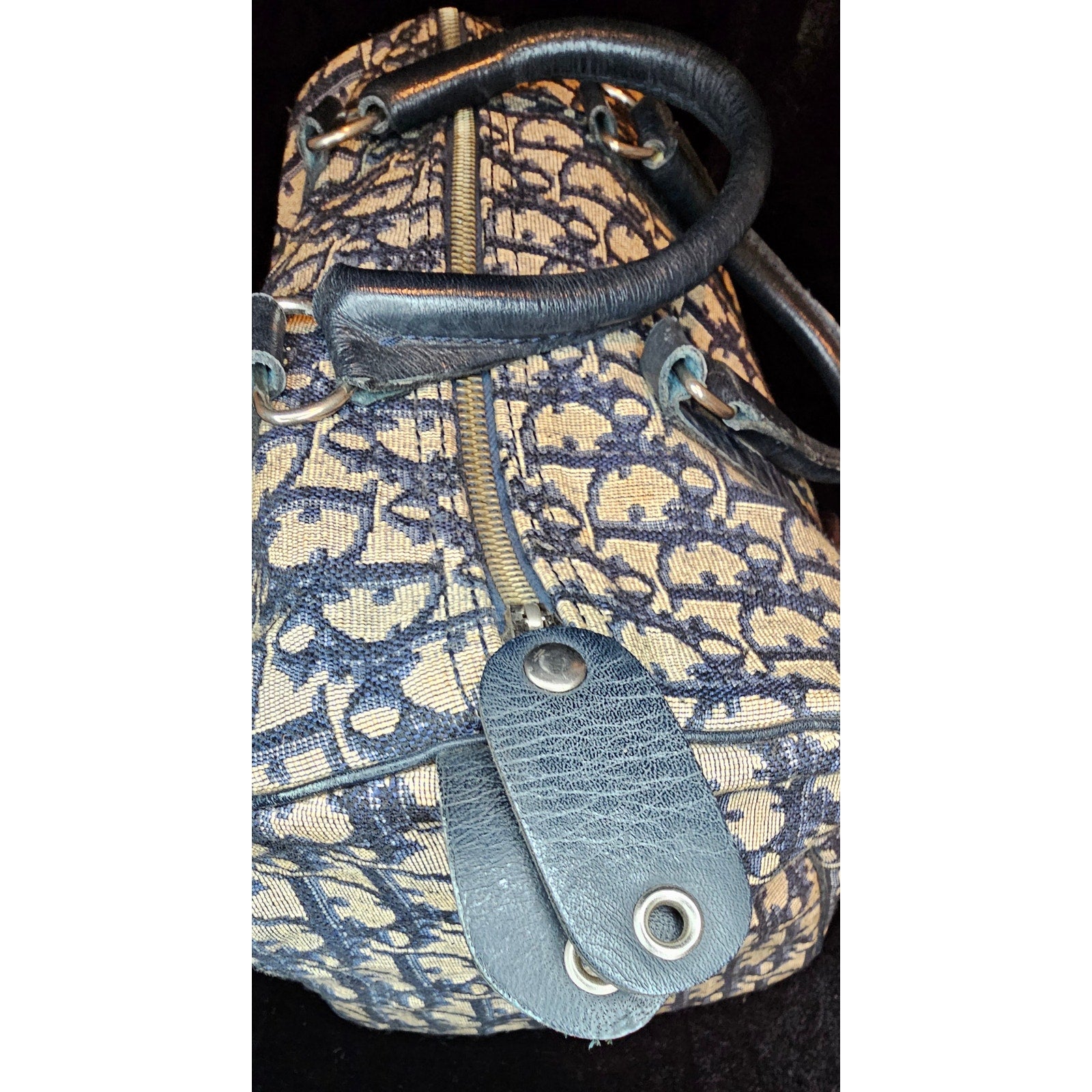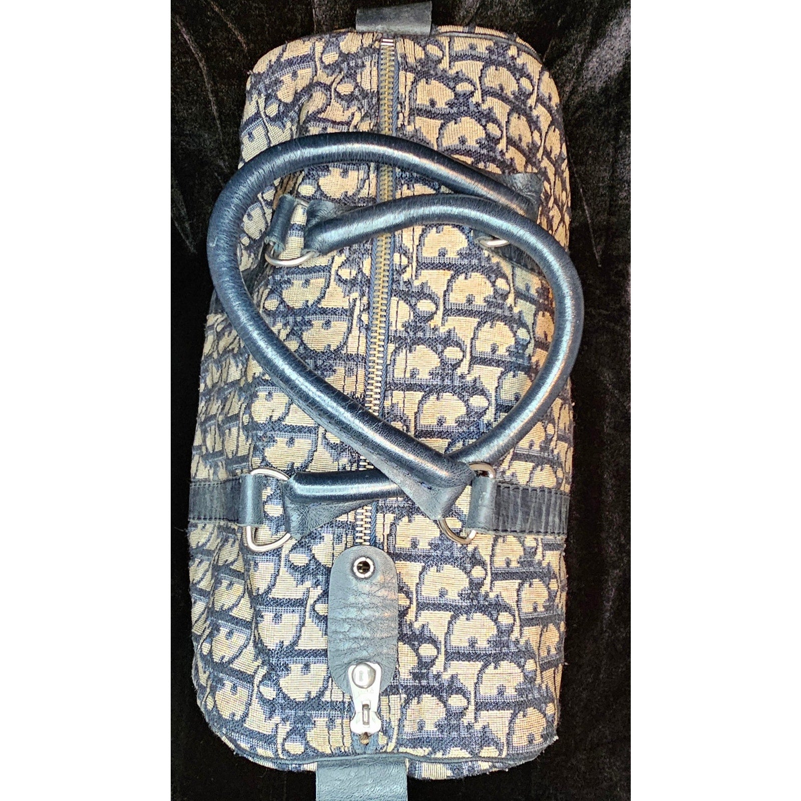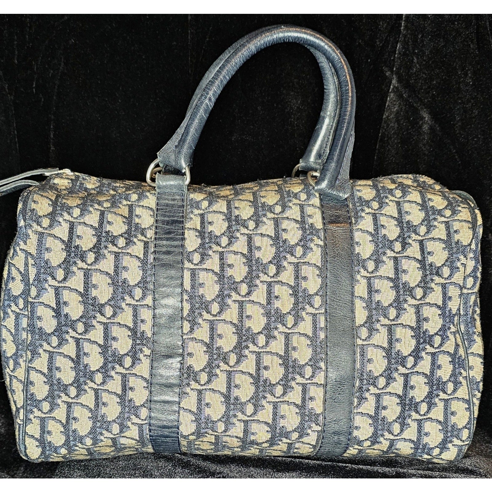 Christian Dior Vintage Trotter Boston bag in navy blue canvas with leather trim