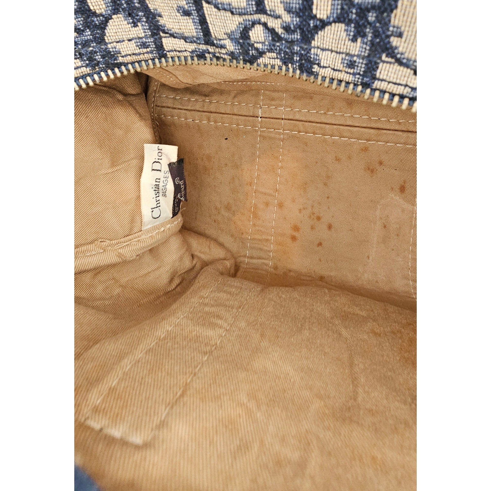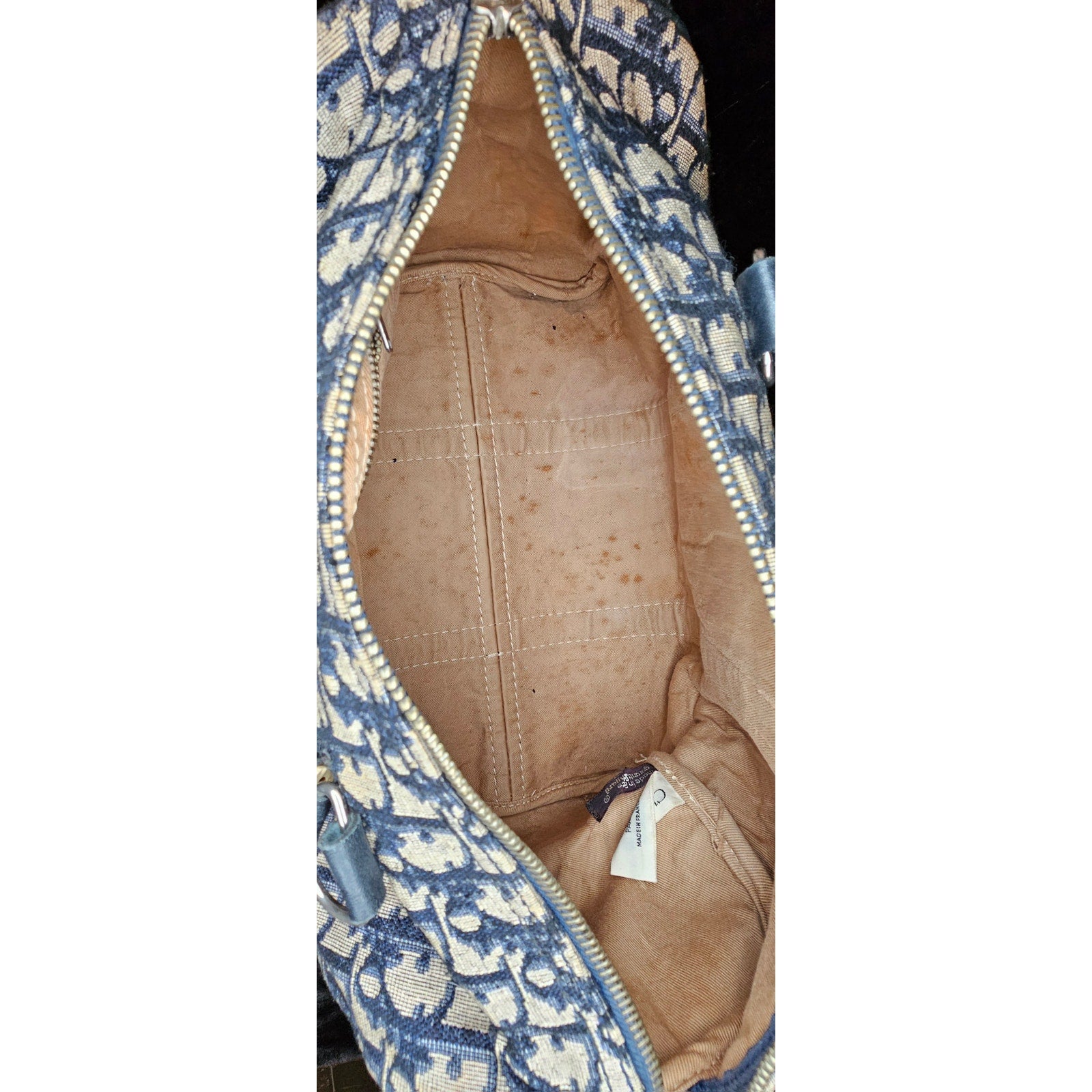 Condition: Pre-owned, fair condition (refer to pictures for stain on one of the bottom corner, and the spotting in the interior)