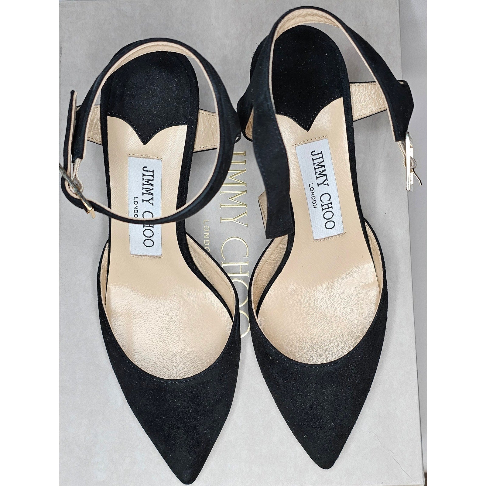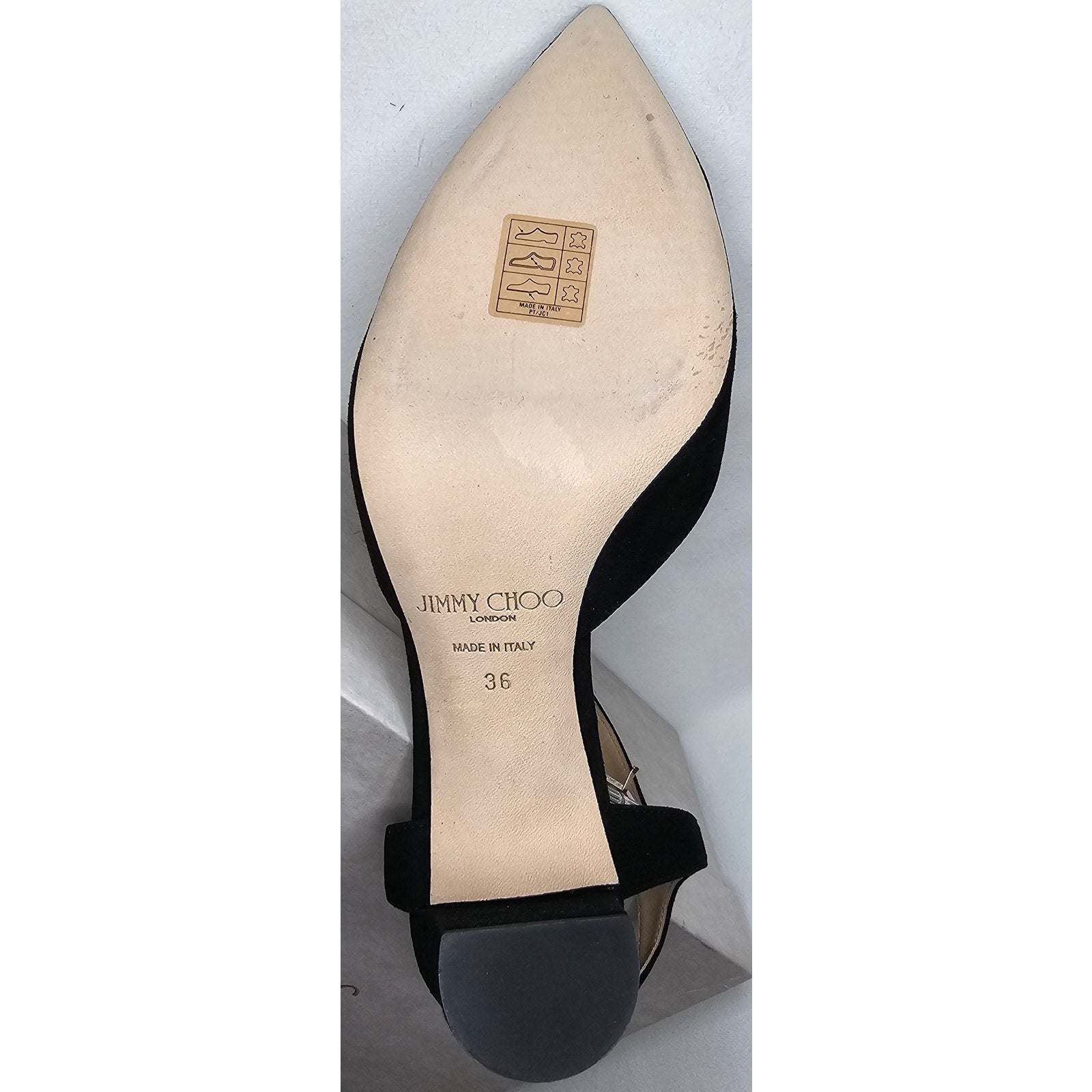 Jimmy Choo Black Suede Block Heels Ankle Strap Pointed Toe Shoes Size 36