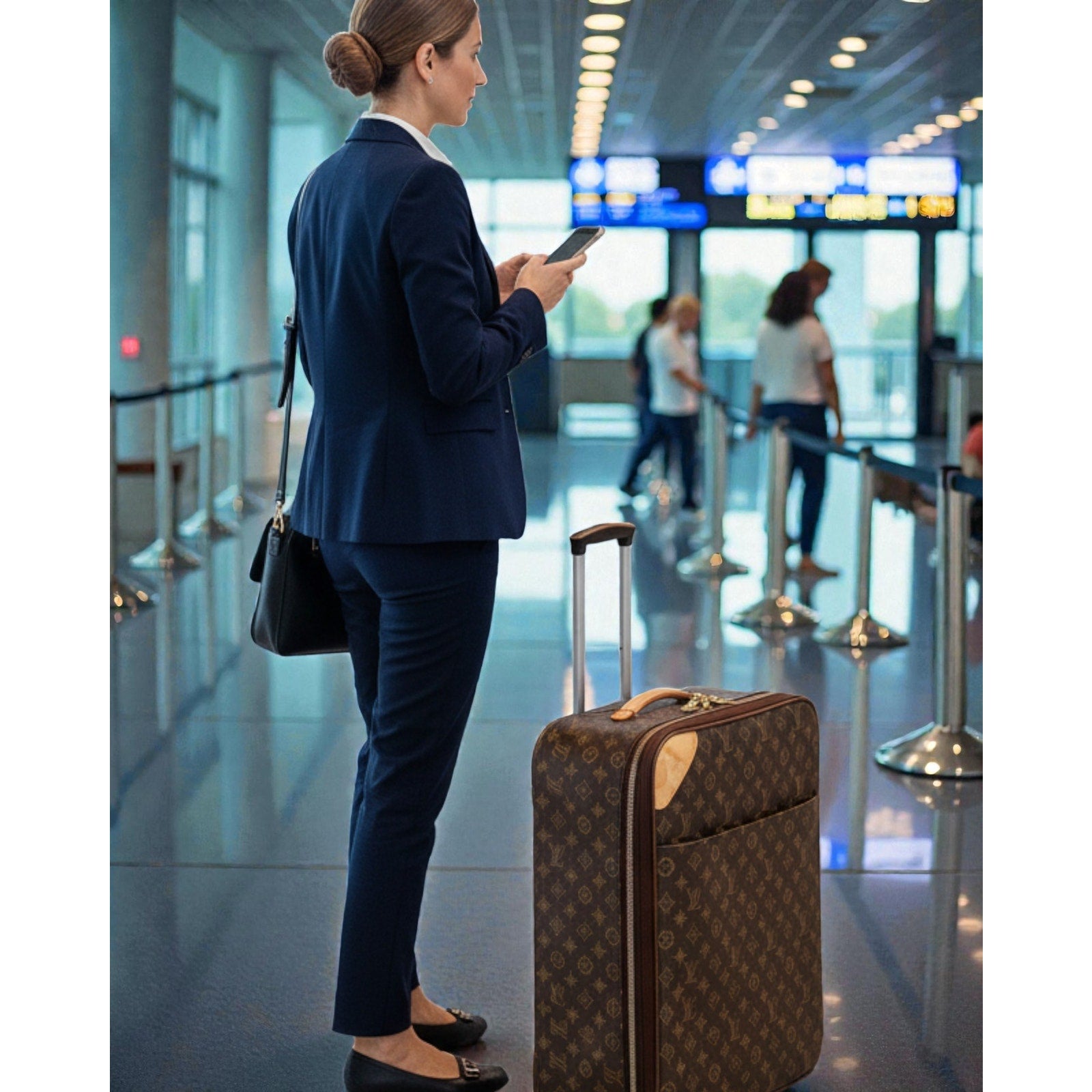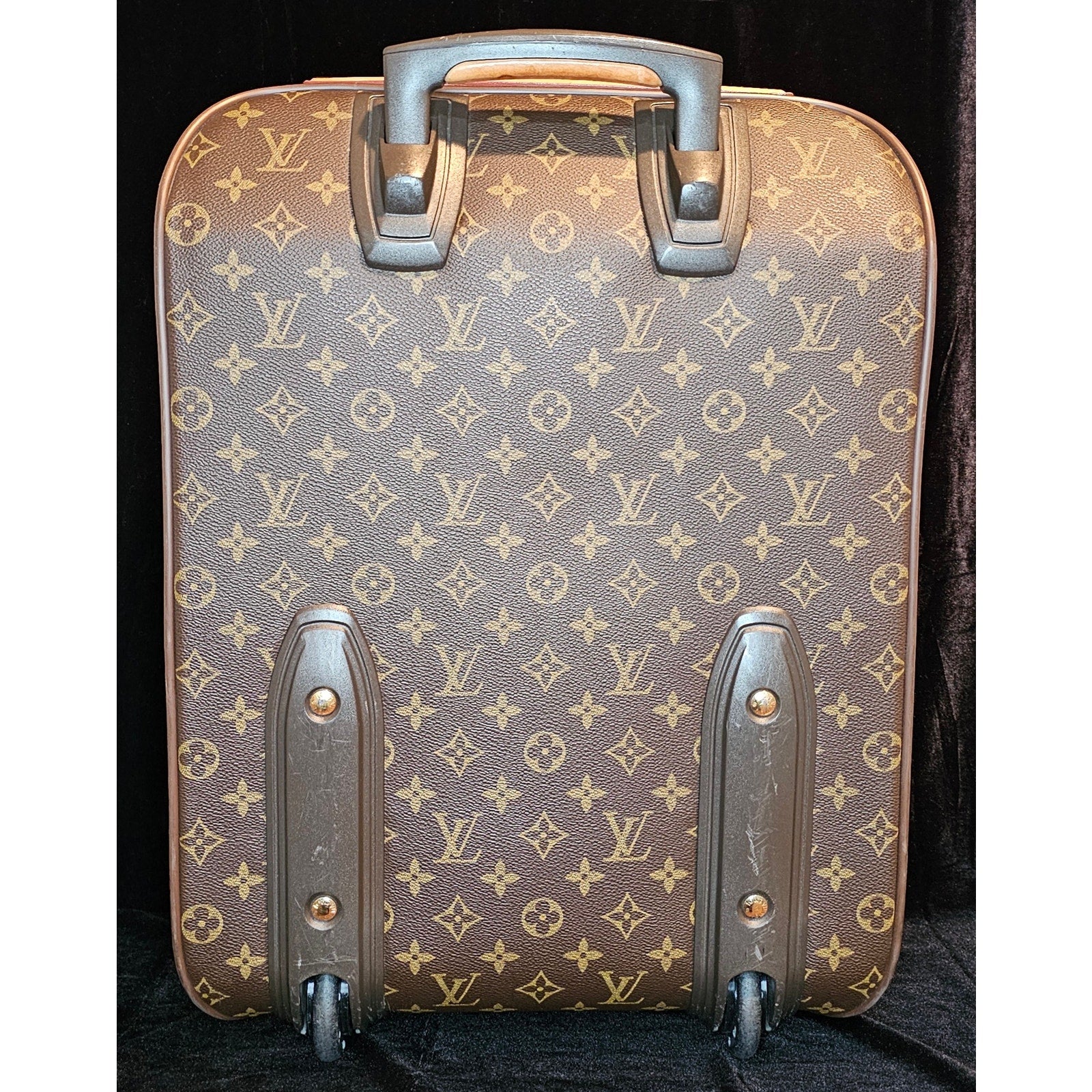 This stylish pre-owned Louis Vuitton Pegase 45 rolling suitcase is crafted in the iconic Monogram canvas. It's the perfect travel companion for those who appreciate luxury and functionality. The spacious interior and smooth-rolling wheels make it a breeze to navigate through airports and hotels.