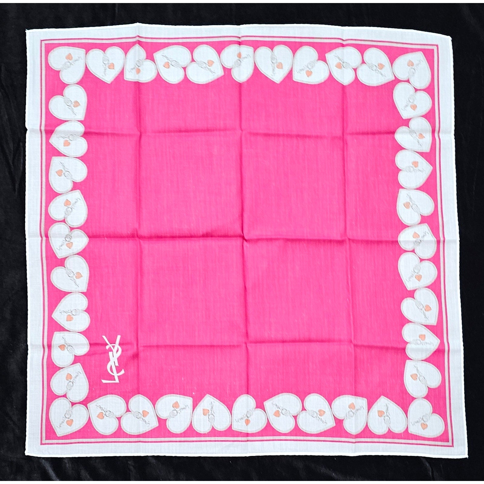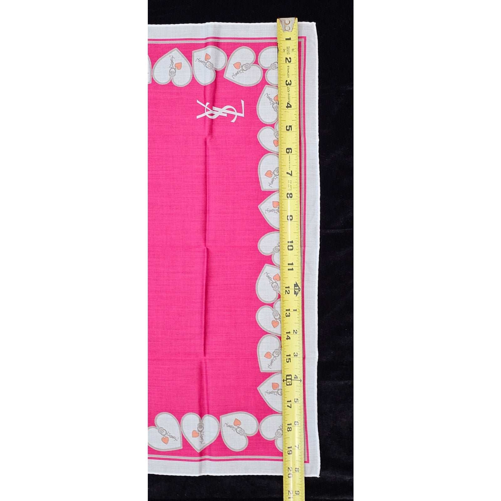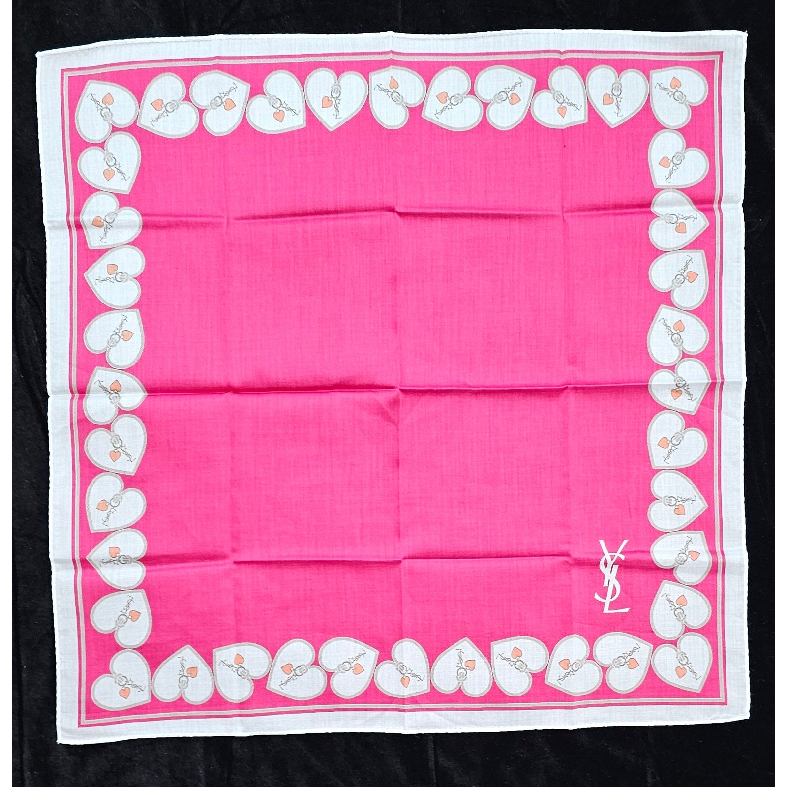 Add a touch of luxury to your wardrobe with this beautiful Yves Saint Laurent silk handkerchief. This elegant accessory features a charming heart design, perfect for adding a pop of color and sophistication to any outfit or bag.